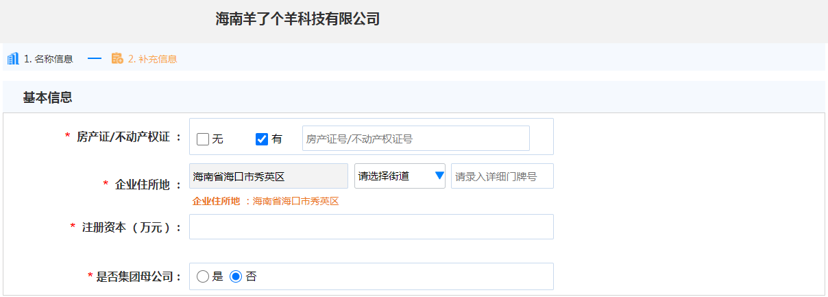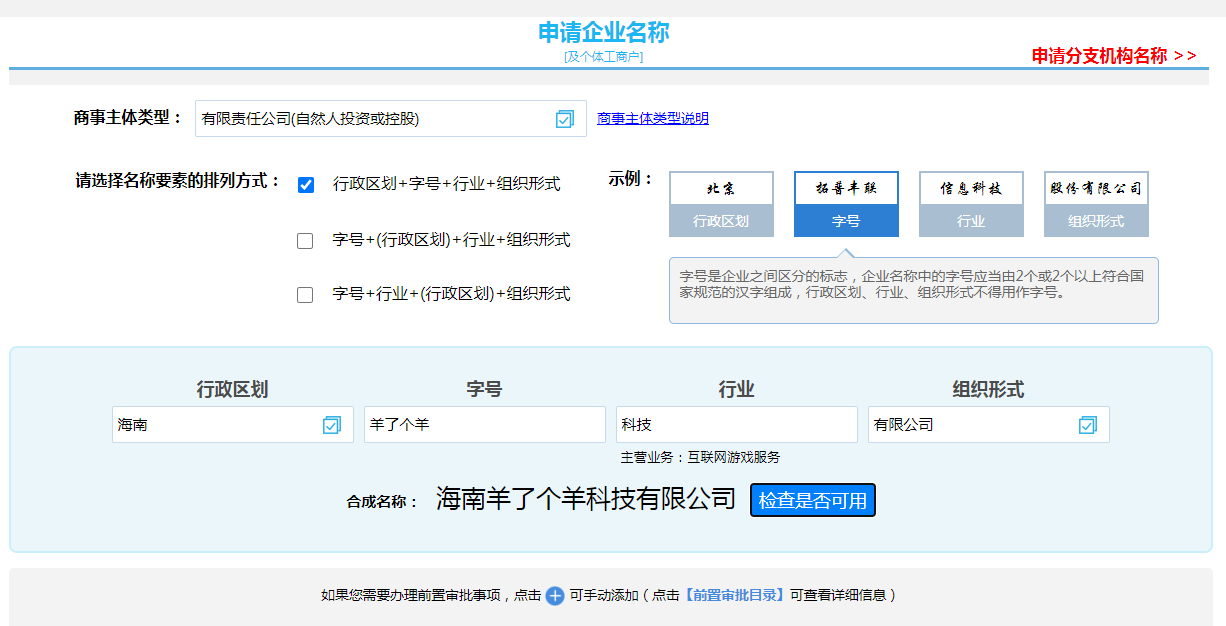 1、先申請(qǐng)企業(yè)名稱,確定羊了個(gè)羊這個(gè)字號(hào);