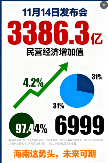 數(shù)據(jù)顯示,2025年前三季度,海南省民營(yíng)經(jīng)濟(jì)實(shí)現(xiàn)增加值3386.3億元,同比增長(zhǎng)4.2%,增速跑贏多項(xiàng)核心經(jīng)濟(jì)指標(biāo)。民間投資活力持續(xù)釋放,同期完成民間投資754.1億元,占全省投資比重達(dá)31%,在基礎(chǔ)設(shè)施建設(shè)、產(chǎn)業(yè)升級(jí)等領(lǐng)域的投入不斷加大,為自貿(mào)港經(jīng)濟(jì)增長(zhǎng)注入堅(jiān)實(shí)動(dòng)力。